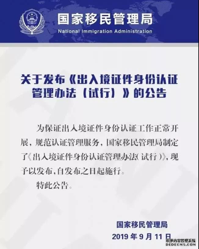 9月11号,一则人们期待已久的利好政策终于破土而出!当日,中国移民管理局正式对外发布《出入境证件身份认证管理办法(试行)》,以下简称《办法》。