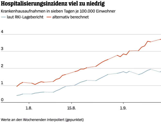 然而,现在对住院率有相当多的批评,主要是其数据对疫情形势判断的误导性。根据Zeit Online的计算数据,德国的7日内住院率被大大低估了近79%!